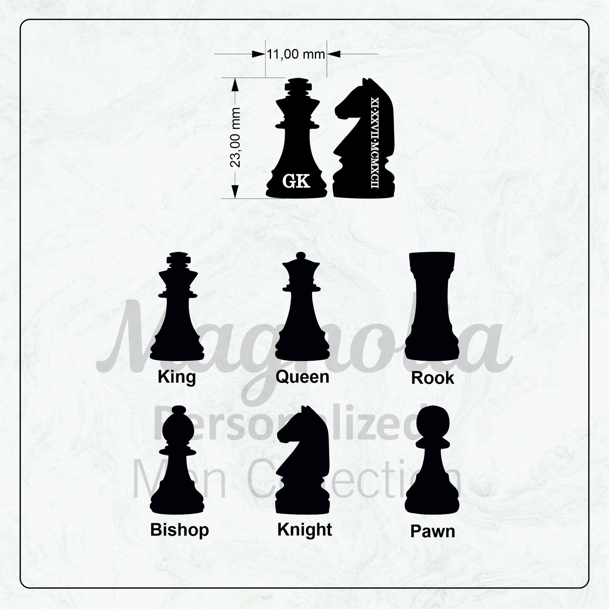 - Add Your Personalization: Specify the initials or dates you'd like engraved on each chess piece.