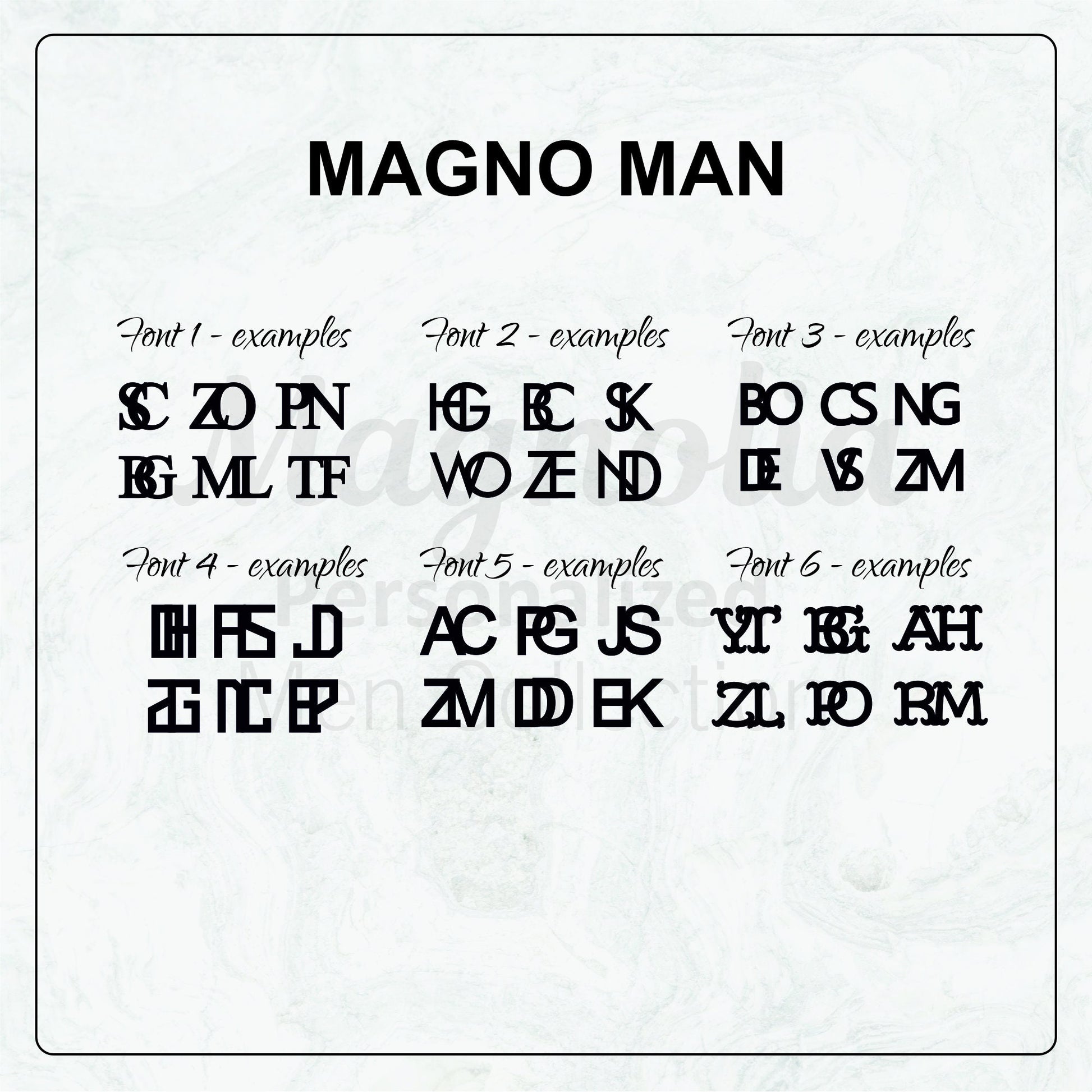 Personalization Box: Specify your initials and font choice.